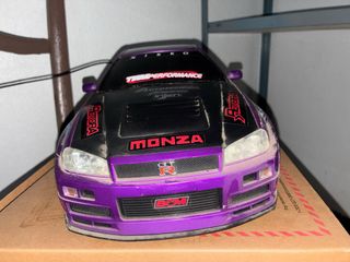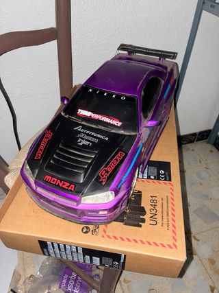 Coche de radiocontrol Nikko a escala del Nissan GTR R34 del año 2005. Presenta un diseño deportivo con detalles llamativos. - Escala 1/10 - Modelo: Nissan GTR R34 - Marca: Nikko - Año: 2005 - Color: Morado y negro - Diseño: Stickers de MONZA, ROJO-RA, TUNING PERFORMANCE y NIKKO. Se incluye el mando, no tiene cargador, no se si funciona pero tiene poco uso. ACEPTO OFERTAS