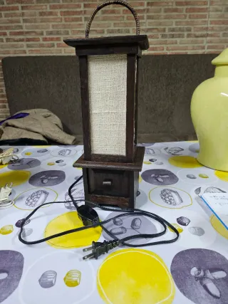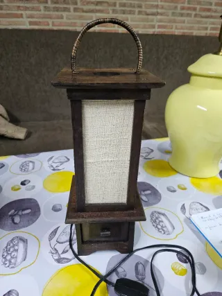 Lámpara de mesa con un diseño inspirado en el estilo asiático. Su estructura de madera y pantalla de tela de lino le dan un toque cálido y acogedor. - Diseño de estilo asiático. - Estructura de madera. - Pantalla de tela. Enchufe de reino unido Nueva sin estrenar