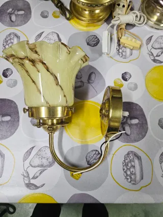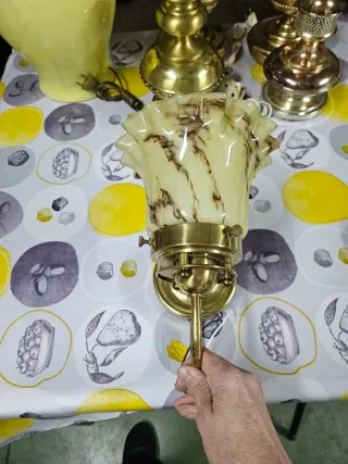 Elegante aplique de pared con detalles en latón y una tulipa de cristal veteado. - Diseño clásico y sofisticado. - Aporta un toque de calidez a cualquier estancia.
