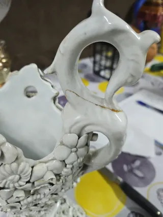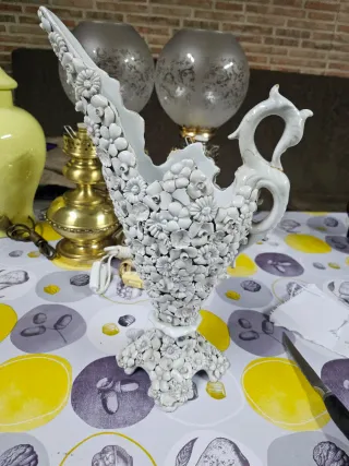 Precioso jarrón antiguo de porcelana con un diseño floral muy detallado. Una pieza decorativa única. - Acabado en blanco. - Material: porcelana.