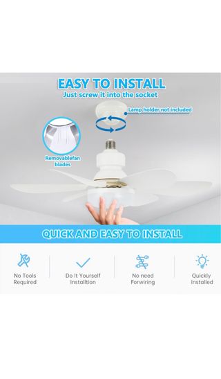 Ventilador de techo con diseño moderno y fácil de instalar. - Se atornilla directamente al casquillo de la lámpara. - No requiere herramientas ni cableado. - Cuchillas de ventilador extraíbles.