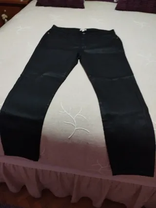 Pantalones vaqueros negros con detalle elástico. - Cintura elástica. - Dobladillo con detalle de hilo rojo.