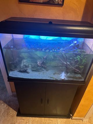 Acuario completo con su mueble. - Acuario de cristal. - Mueble de soporte. - incluye lampara led y filtro eheim - Medidas urna 79 largo 50 alto 30 ancho