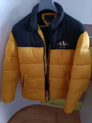 Chamarra acolchada con diseño moderno. - Combinación de colores negro y amarillo. - Cierre frontal. - Bolsillos laterales.