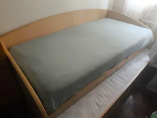 Se vende cama nido de madera, ideal para aprovechar el espacio. - Medidas: 90 x 190 cm. - Estructura de madera clara. - Incluye cama inferior extraíble. - Colchones prácticamente nuevos, se les puede dar uso perfectamente