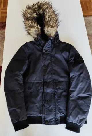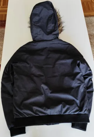 Cazadora de la marca Jack & Jones en color azul. -Talla niño 152cm - Capucha con pelo sintético. - Cierre de botones. - Bolsillos frontales con solapa. - Puños y bajo elásticos.