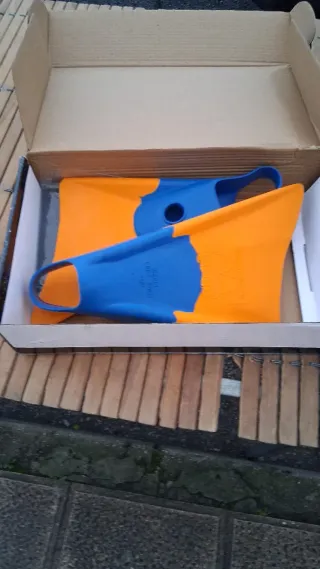 Aletas de natación Churchill Makapuu. - Diseño de aleta. - Color azul y amarillo.