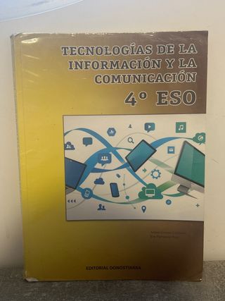 Libro de tecnología de la información y la comunicación para 4° ESO. Viene forrado pero se le puede quitar. Por dentro esta bien, lo único esque tiene las puntas dobladas