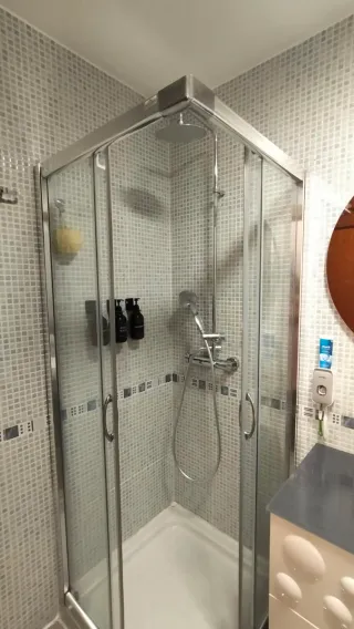 Vendo mampara de ducha marca SELESMA (gama alta, no es mampara básica) junto con plato de ducha 80x80. Se retira por reforma, no por deterioro. ✔ Medidas plato: 80x80 cm ✔ Altura mampara: 190 cm ✔ Cristal templado grueso ✔ Perfilería de aluminio muy robusta ✔ Correderas y estructura en perfecto estado ✔ Plato en muy buen estado, sin grietas ni golpes Es una mampara de gran calidad, muy resistente y duradera. Ideal para quien quiera montar una ducha completa ahorrando mucho dinero. Nueva costó más de 900€ la mampara + plato. Se vende todo junto. Desmontaje a cargo del comprador.
