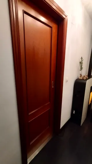 Vendo puerta corredera de madera maciza en perfecto estado. Se retira por reforma, no por deterioro. ✔ Medidas hoja: 72,5 cm ancho x 203 cm alto ✔ Puerta robusta y de gran calidad (no es hueca) ✔ Sistema corredera ✔ Incluye marco y tapetas ✔ Color cerezo muy bonito Ideal para reutilizar en otra vivienda, piso de alquiler o reforma. Nueva costó más de 400€ entre puerta y sistema corredera. Desmontaje a cargo del comprador.
