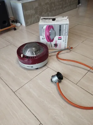 Estufa de gas Domaco modelo CALA 2.2/98. - Potencia calorífica: 1.1 KW. - Color gris/granate.