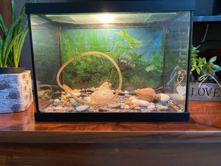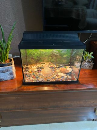 Acuario listo para usar, con grava de colores y adornos. - Incluye plantas de acuario. - Adornos de conchas y rocas.
