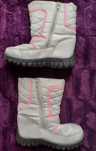 Botas de nieve grises y rosas