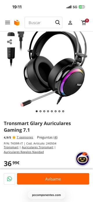 Auriculares Tronsmart Glary con sonido 7.1, ideales para gaming. Cuentan con un diseño moderno y luces LED. Sin caja, con uso pero funcionales perfectamente. Cambio o negocio - Micrófono flexible. - Control de volumen en el cable. - Conexión USB.