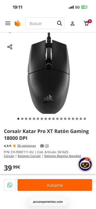 Ratón gaming Corsair Katar Pro XT en color negro. Diseño ligero y ergonómico para largas sesiones de juego. Cambio o negocio - Forma compacta y ambidiestra. - Botones programables. - Rueda de scroll. - Logo de Corsair.