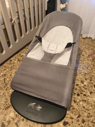 Hamaca para bebés de la marca BabyBjörn en color gris. Hamaca original de la marca . Se ha usado bastante desde los 3 hasta los 9 meses sobretodo. Le encantaba estar ahí mientras comíamos e incluso se dormía su siesta. La funda ha sido lavada varias veces. La vendo en su caja original. Artículo usado pero en buen estado y de muy buena calidad.