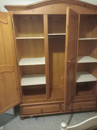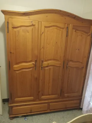Armario de madera con tres puertas y dos cajones. - Diseño clásico y elegante. - Amplio espacio de almacenamiento. - Diseño clásico