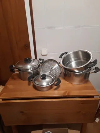 Conjunto de 4ollas una para vapor de alta calidad AMC. - Fabricadas en acero inoxidable. - Diseño elegante y funcional. - Incluye varios tamaños para diferentes preparaciones.