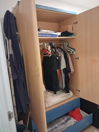 Armario juvenil con espacio para colgar ropa. - Dos puertas. - Barra para perchas. - Cajones inferiores para almacenamiento.