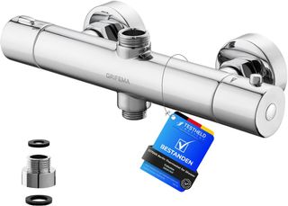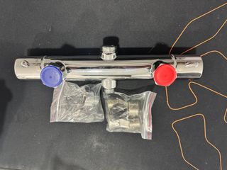 Termostato para columna de ducha de la marca GRIFEMA. Ligeras marcas en las tuercas, segun fotografiías - Acabado en plata brillante. - Fabricado en metal resistente. - Incluye accesorios de montaje.