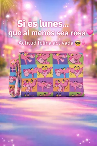 Neceser artesanal con un divertido estampado de la Pantera Rosa - Medidas: 18x11 cm. - Diseño multicolor con detalles en rosa.
