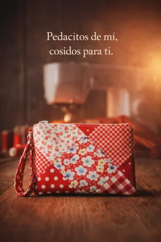 Neceser o monedero hecho a mano con un diseño patchwork único. Sus dimensiones son 18x11 cm. - Tejido exterior de algodón con diferentes estampados. - Cierre de cremallera. - Asa lateral para facilitar su transporte.
