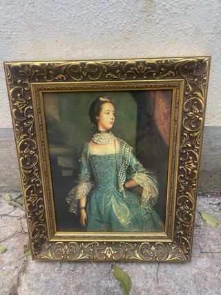 Conjunto de dos cuadros antiguos con marcos ornamentados. - Marco con acabado dorado. - Cada cuadro presenta una escena clásica.