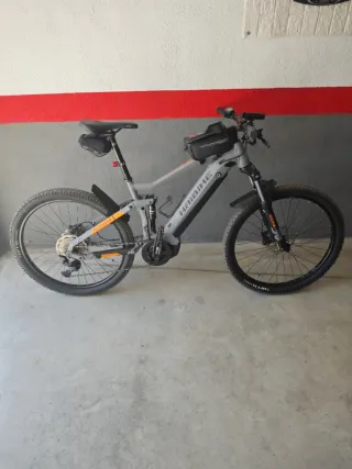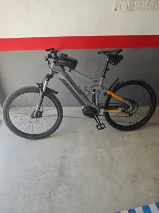Bicicleta eléctrica Haibike full seven con doble suspensión, totalmente nueva e impoluta por donde se mire y totalmente equipada por falta de uso con tan solo 437 kilómetros. MEJOR VER Y COMPROBAR SU ESTADO Y FUNCIONAMIENTO. - Talla M. - Cambio Shimano Deore. - Motor Yamaha PW-ST System. - Batería 720W. - Cuadro aluminio de 6061. - Frenos Hidráulicos delantero y trasero Shimano MT-400. - Modelo de doble suspensión. - Color gris con detalles naranjas. - Incluye bolsa de sillín y bolsa de manillar. - Timbre. - Luces de led delantera y trasera. - Guardabarros delantero y trasero.