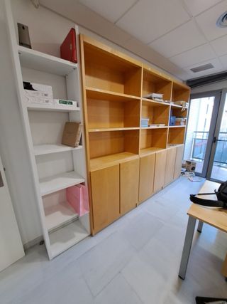 Conjunto de mobiliario de oficina. - Escritorio en forma de L. 4 unidades - Armario con cajones. 1 unidad - Diseño moderno y funcional. Todo 500€