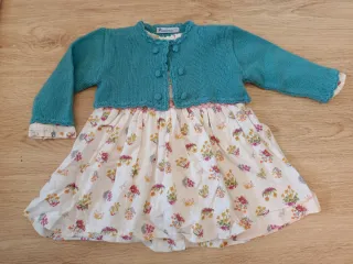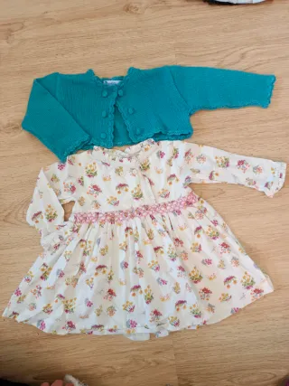 Conjunto de vestido blanco con estampado floral y torera de punto azul. - Vestido con volantes en el bajo. - Torera de manga larga con botones. - Cuello y puños de la torera con detalle festoneado. Más cositas en mi perfil. Hago lotes. Siempre subiendo cosas. Sígueme!