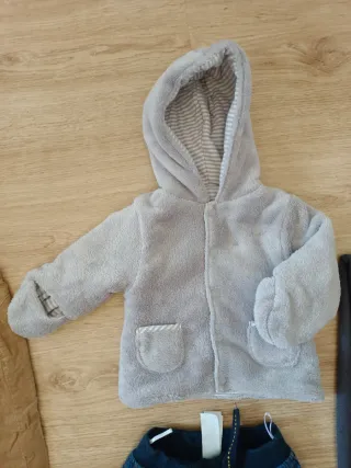 Conjunto de ropa para bebé de 1 a 3 meses. - Peto de pana marrón. Zara. - Chaqueta gris reversible con capucha. OB. - Pantalón vaquero azul. C & A. - Pantalón marrón con cintura elástica. H & M. - Conjunto de guantes y bufanda. Más cositas en mi perfil. Hago lotes. Siempre subiendo cosas. Sígueme!