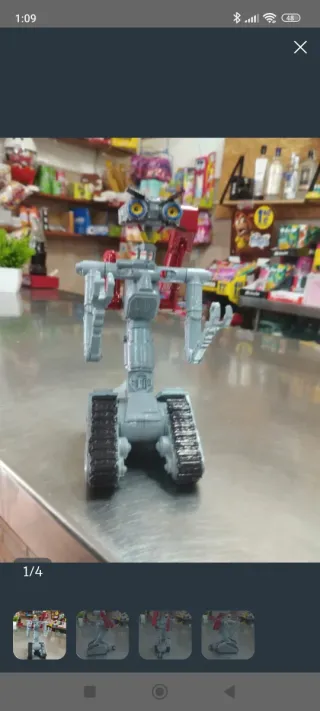 Figura coleccionable del robot Jhonny 5 de la película Cortocircuito. - Diseño detallado con orugas. - Brazos articulados. - Cabeza con ojos característicos.mide unos 20 centímetros precio pintado sin pintar 12€ unidad