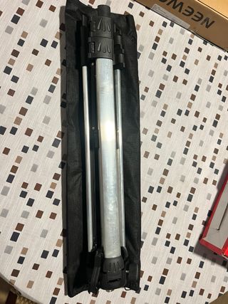 Trípode compacto y ligero, ideal para cámaras. - Cabezal con nivel de burbuja. - Mecanismo de ajuste rápido.