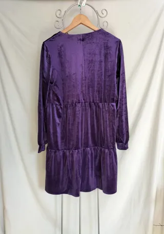 Vestido de terciopelo con un diseño de volantes. - Manga larga. - Cuello en V. - Largo: 88 cm.