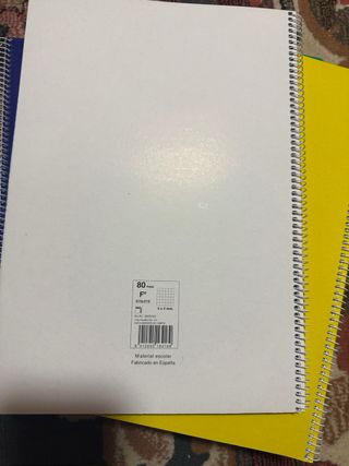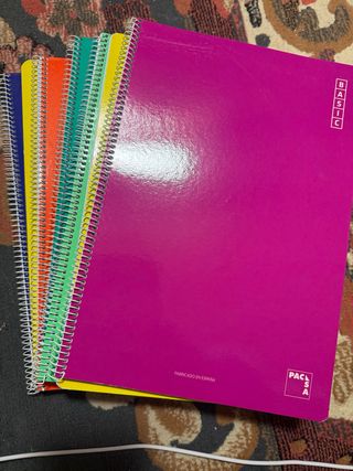 Lote de cuadernos de espiral con cubiertas de colores vivos. - Cubiertas de colores variados: azul, naranja, verde, amarillo y fucsia. - Encuadernación en espiral metálica. - Fabricado en España.