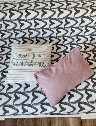 ¡Dos cojines preciosos para darle un toque cálido y chic a tu sofá o cama! 🎀 • Cojín Blanco/Negro con Mensaje: Fondo de rayas finas, con la frase "I'm walkin' on sunshine" ☺️. ¡Alegre y muy combinable! • Cojín Rectangular Rosa Palo: Tela suave y de textura melange, ideal para un toque de color sutil 🌸. Nuevos y listos para encontrar un nuevo hogar. ¡El precio es por los dos juntos! 👉 Si te gusta este estilo de decoración (o si buscas ropa, calzado, etc.) ¡no dudes en seguir mi perfil! Subo cosas nuevas y bonitas con frecuencia. ¡Gracias por mirar! 😊