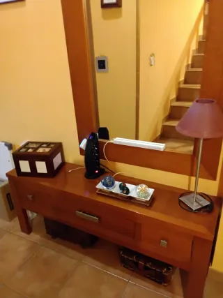 Mueble de entrada con un diseño elegante y funcional, perfecto para recibidores. - Acabado en madera maziza de alta calidad. Mueble bajo con 3 cajones. Espejo misma madera gran tamaño.