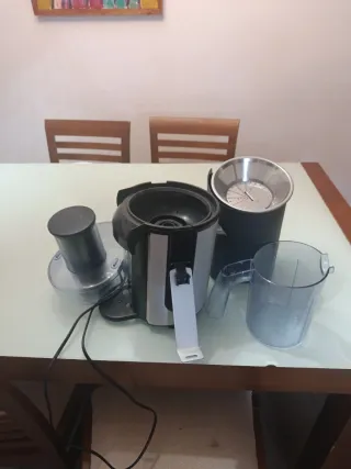 Licuadora Philips con varios accesorios. - Base del motor. - Jarra medidora. - Filtro. - Tapa.
