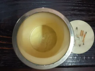 Original bote decorativo con un diseño único. - Elaborado en alabastro. - Presenta detalles en metal plateado.