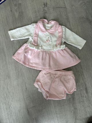 Conjunto Vestido y Pololo Bebé Rosa Conejito