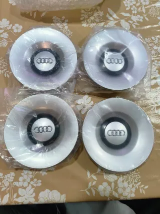 Set de 4 embellecedores para llantas de Audi. Dale un toque distintivo a tu vehículo. - Diseño plateado con el logo de Audi. - Material de alta calidad.