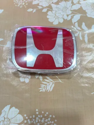 Emblema frontal para capó de Honda con un diseño distintivo en rojo y plateado. NUEVO A ESTRENAR - Color: Rojo y plateado. - Diseño: Letra H estilizada.