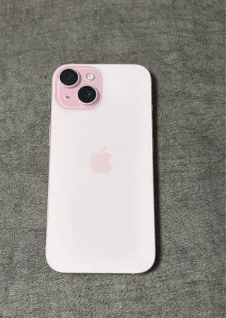 Teléfono móvil iPhone 15 en color rosa. - Diseño elegante y moderno. - Cámara dual en la parte trasera.
