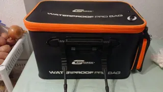 Macuto o cubo oxigenador de la marca Cinnetic. Es un accesorio práctico para mantener el agua en movimiento. - Color negro con detalles naranjas. - Asa de transporte. - Cierre de cremallera.