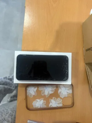Piezas para iPhone 11. - Pantalla rota. - Carcasa transparente con flores.
