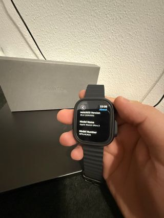 Reloj inteligente Apple Watch Ultra 3 en color negro. - Correa Ocean Loop - Caja original incluida. - Todos los accesorios originales. Lo he usado literalmente un par de horas, lo he comprado por capricho y creo que no le voy a dar uso. Tiene garantia hasta Marzo 2027. Viene con protector de pantalla y funda protectora Spigen. Accepto cualquier prueba y contesto a todas las preguntas, mirad mis valoraciones, gracias.