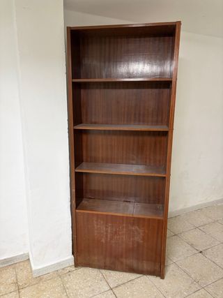 Estantería de madera con un diseño clásico y elegante. - Estructura de madera resistente. - Acabado en tono marrón oscuro. - Múltiples baldas para almacenamiento.