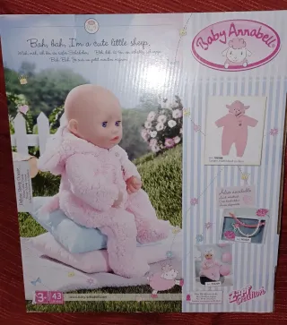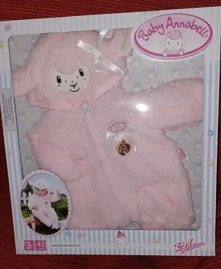 Mono de peluche rosa con diseño de oveja para muñeca Baby Annabell de 43 cm. - Diseño de oveja con capucha. - Detalle de lazo blanco en la capucha. - Adorno con el logo de Baby Annabell y un charm. - Material suave y tierno.