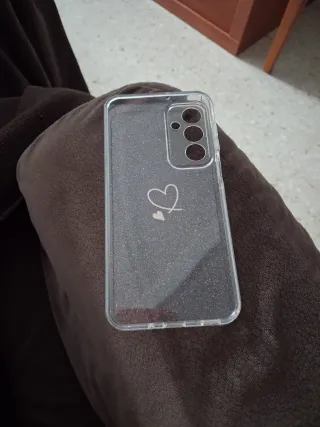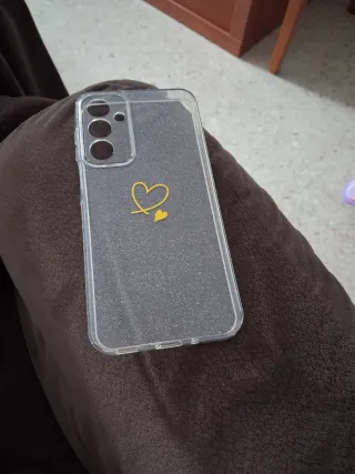 Funda transparente para Samsung A16 con un diseño de corazones. - Material: TPU flexible. - Diseño: Corazones amarillos. - Acabado: Brillante con purpurina. - nueva y en su caja