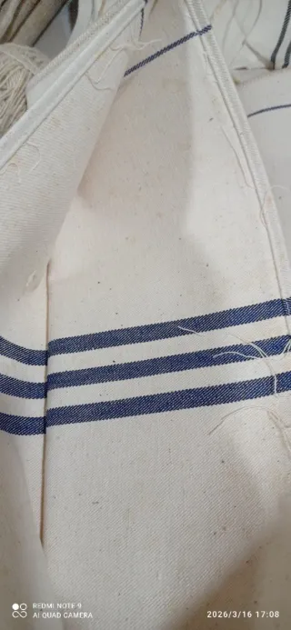 Conjunto de costales antiguos de tela, perfectos para decoración rústica o manualidades. - Material: Tela de yute o similar. - Diseño: Aspecto vintage y natural. - Uso: Ideal para proyectos de bricolaje, decoración de interiores o eventos temáticos. SIN ESTRENAR . Guardados en un baúl Son casi centenarios 40€ unidad 54/50 CMS ancho aproximadamente 120/130 CMS largo aproximadamente